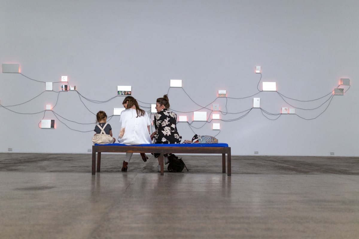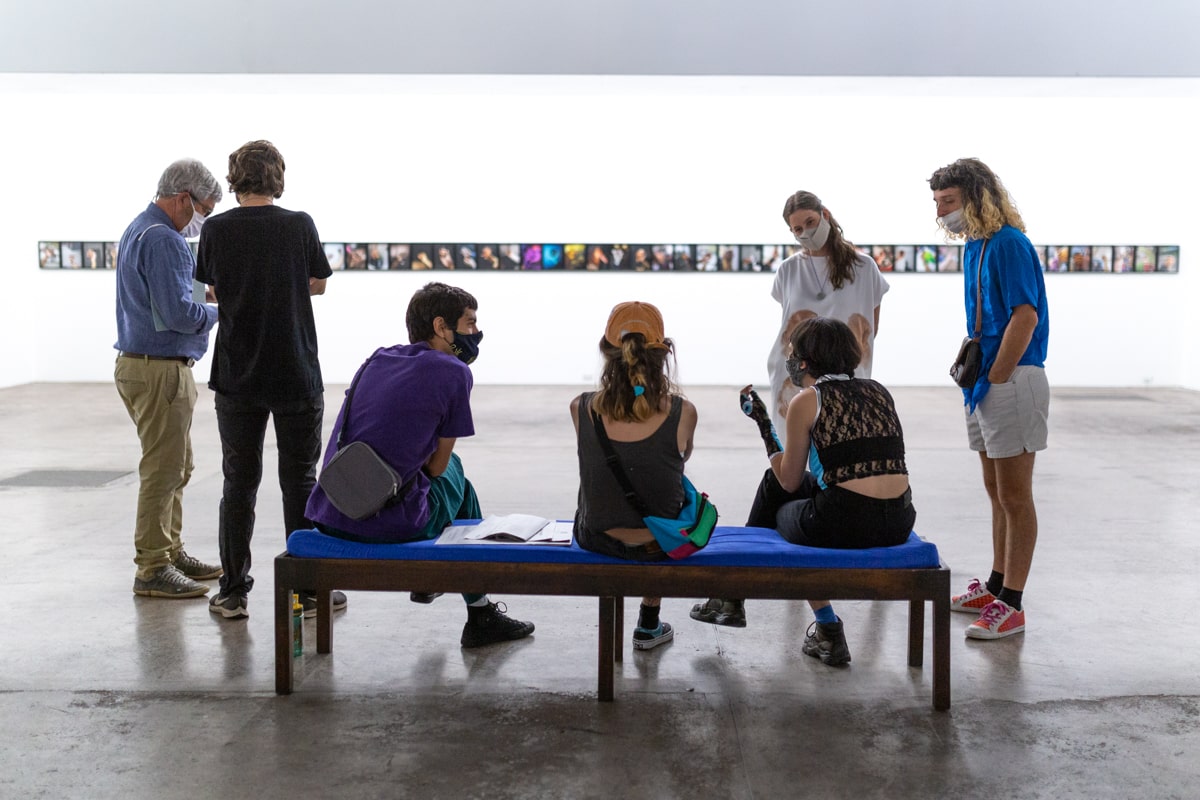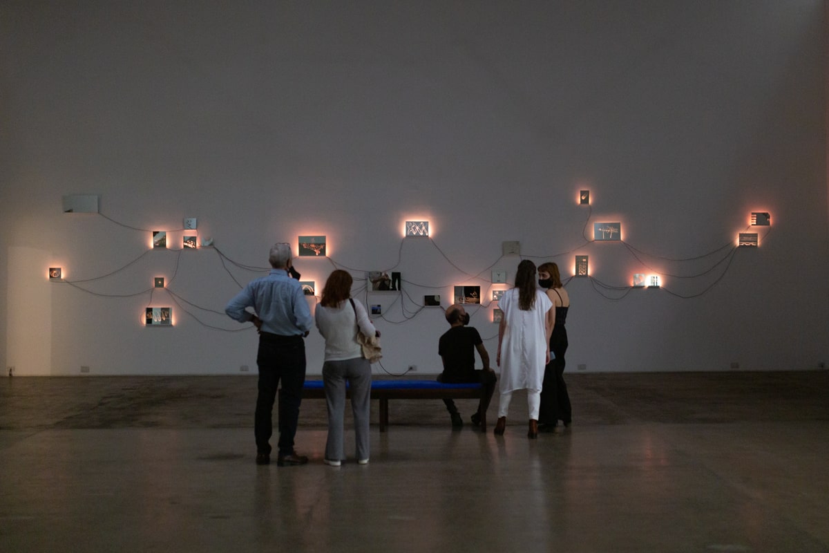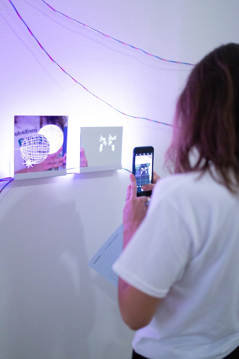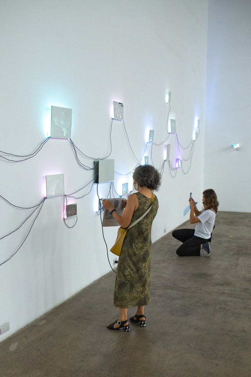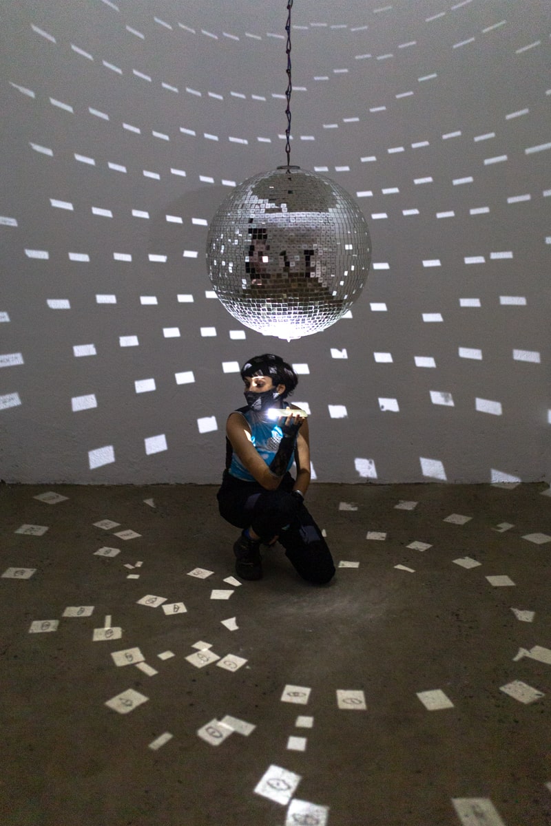 Portraits of friends, family, colleagues, and strangers are the first works that greet us. Photographed with her phone, the artist uses a circular mirror to capture these encounters. This trick means they cannot see themselves; Nina captures their fleeting faces. From "Selfins" (2019-2020) we can see this brief selection of countless photos in which she aims to bring people's lunar side closer and, even more, also crystallize the network of affects, reflections, and contexts that form her great society of living art. Because although technology is always present in Nina's works, reducing its poetics to materiality is, at the very least, petty. As a digital native, the artist fluidly embraces hypermediated language to appropriate its plastic qualities and recreate other sensibilities closer to the mystery of the human spirit than to the materialist critique of information flows. Her practices seek to cultivate the alchemy of the senses, and to do so, she chooses the beam of light that hits a railing, almost any shiny surface, telephones, and rituals.