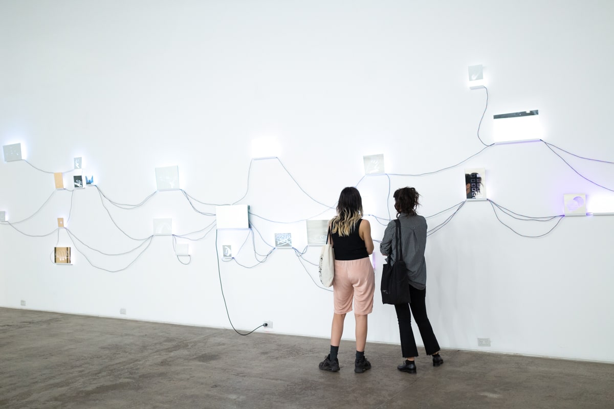 There is something of a coven in Nina and her work, in her familial and artistic lineage, in her ways of moving through art, always accompanied and like a magnet attracting poetry, cables, and bodies in multiple urban interferences. This exhibition, which I could say is her first solo exhibition in a stable format and whose works she has been working on for over a year, is composed of series that reflect both that journey and a more concentrated creative moment.