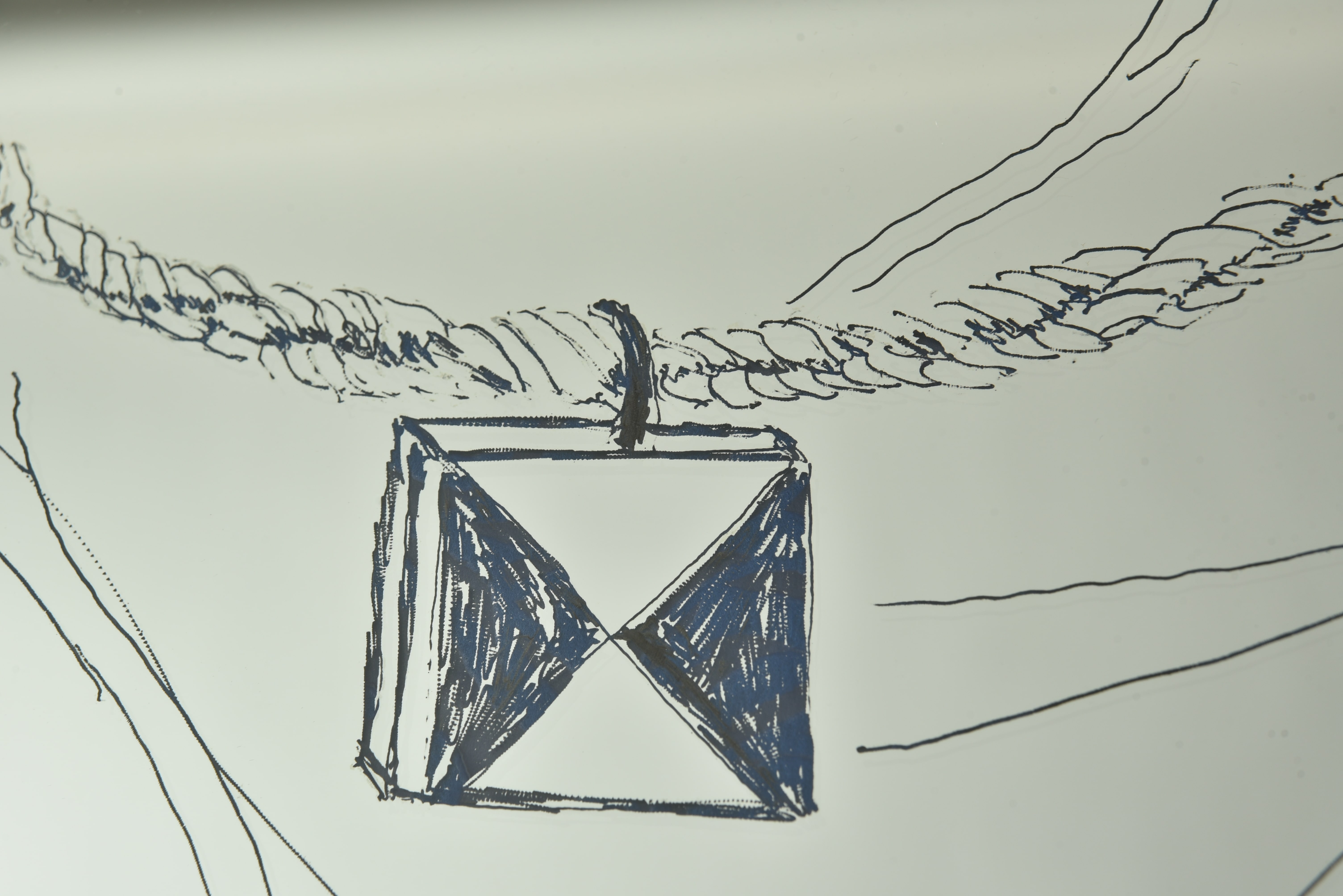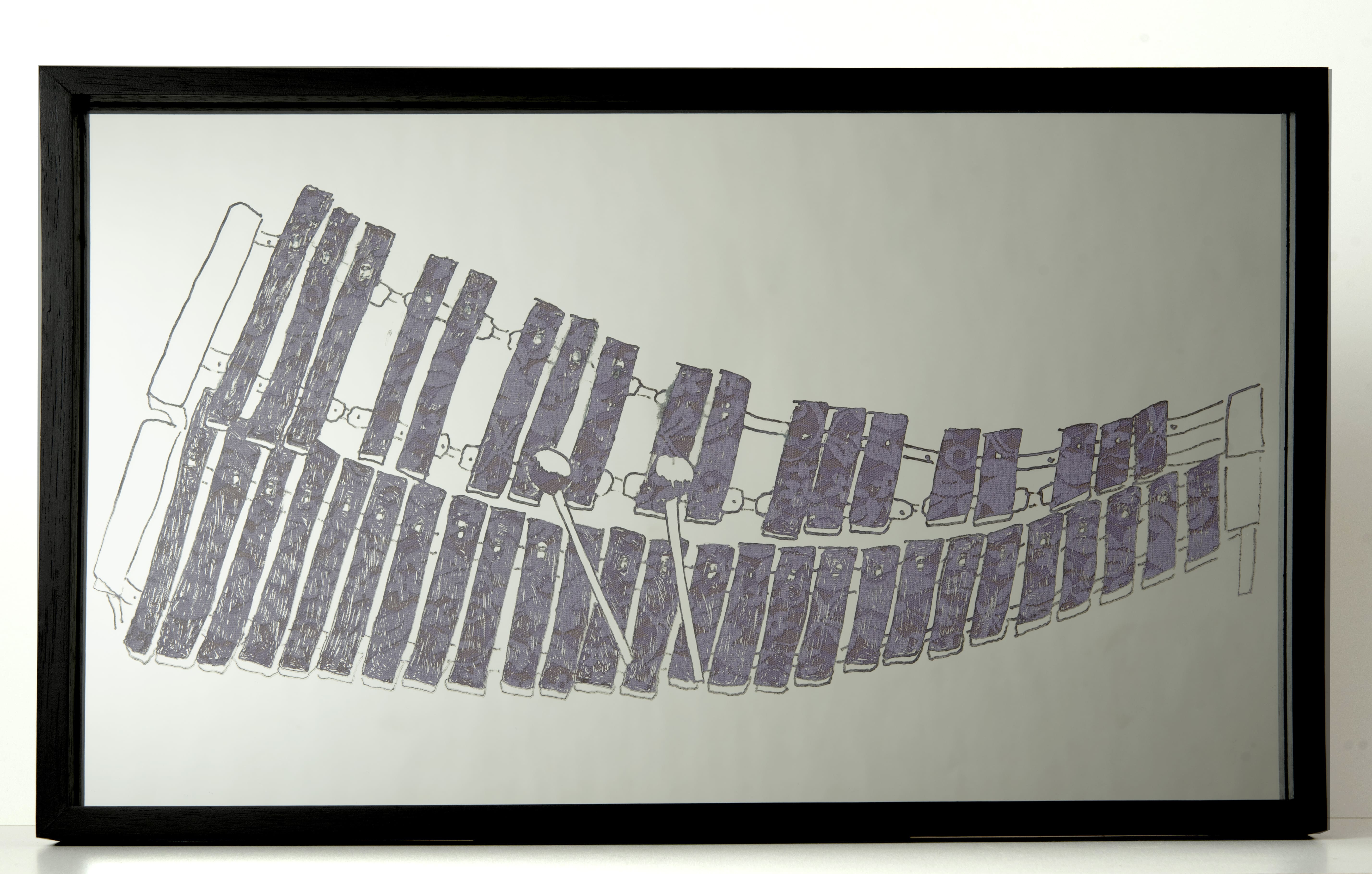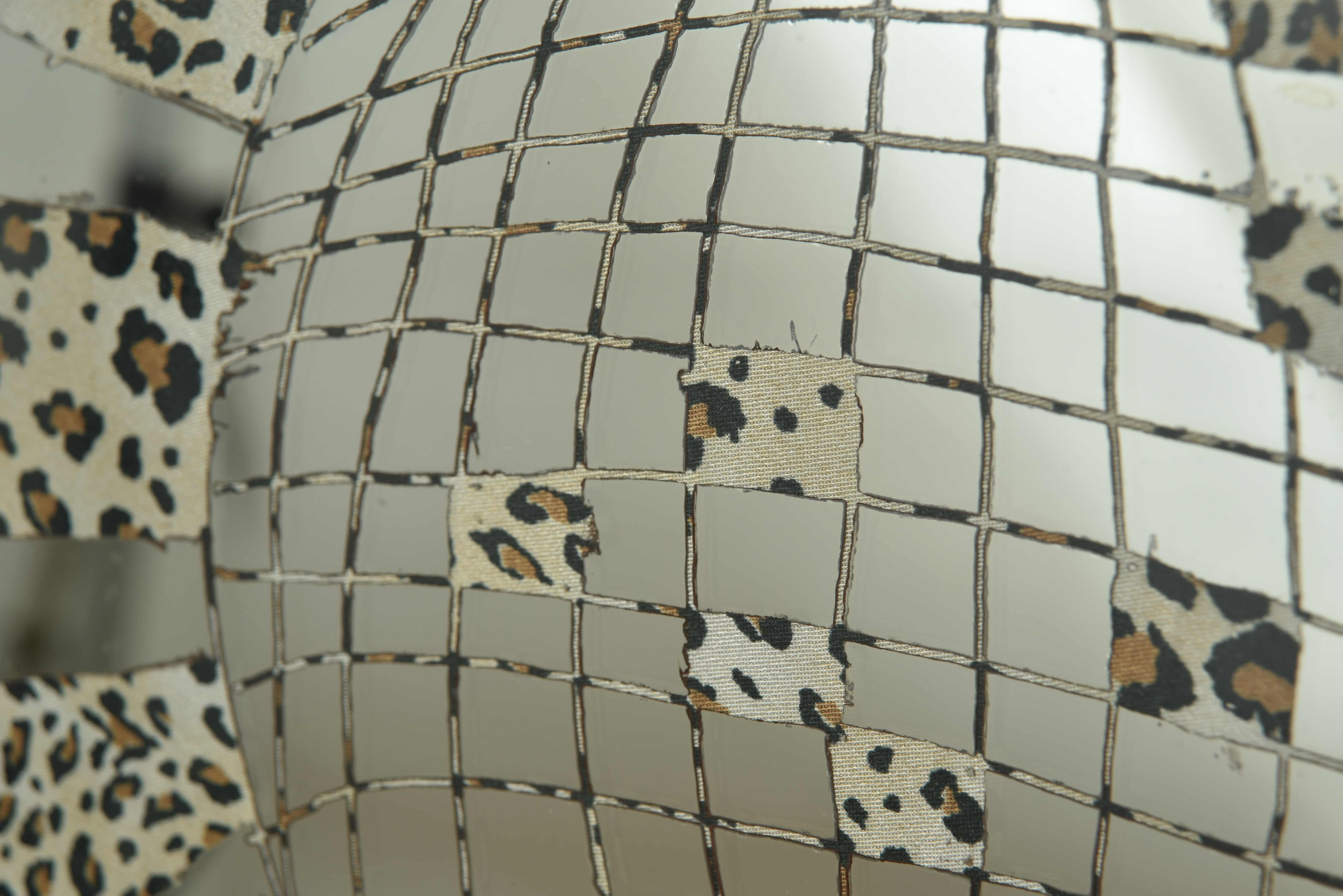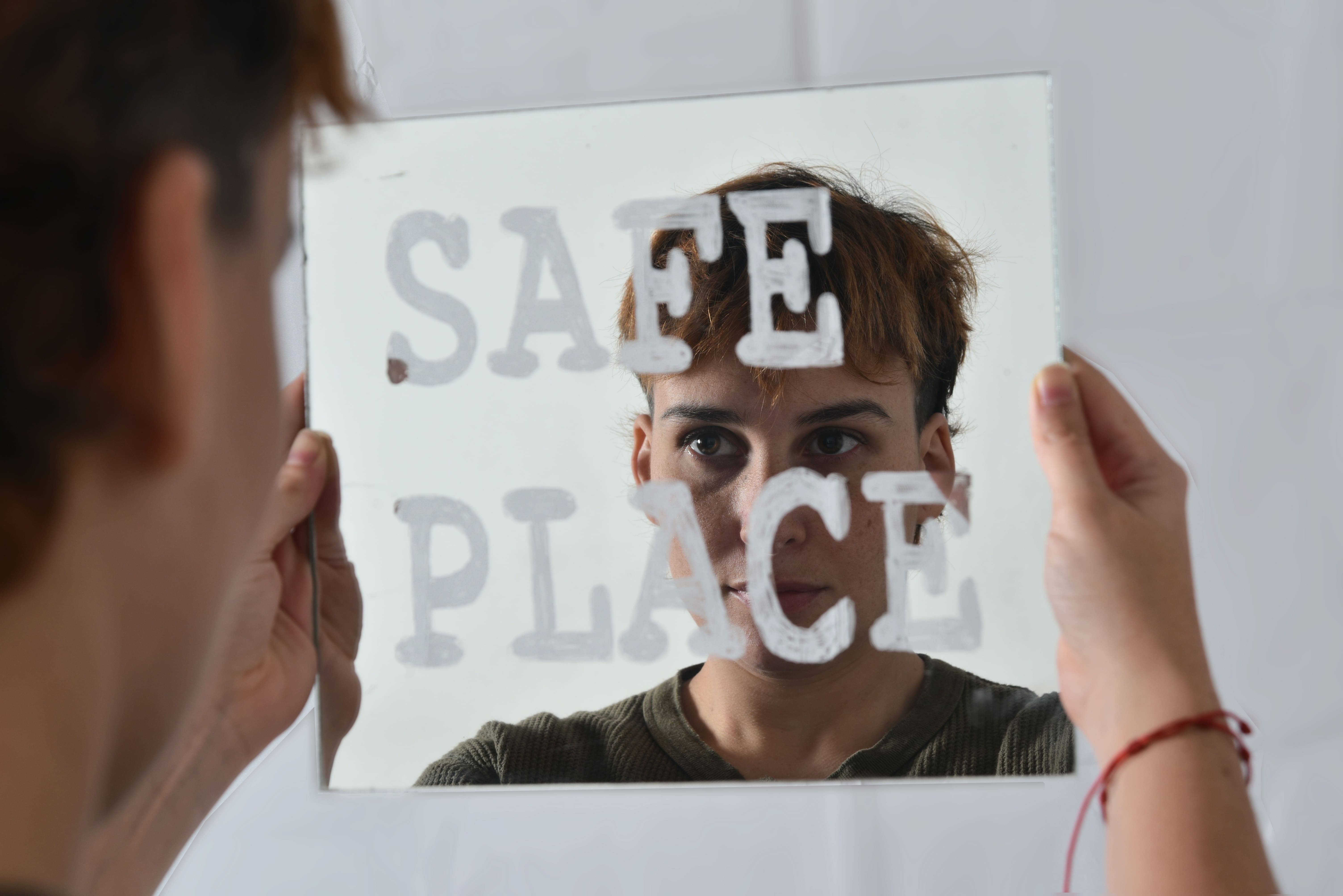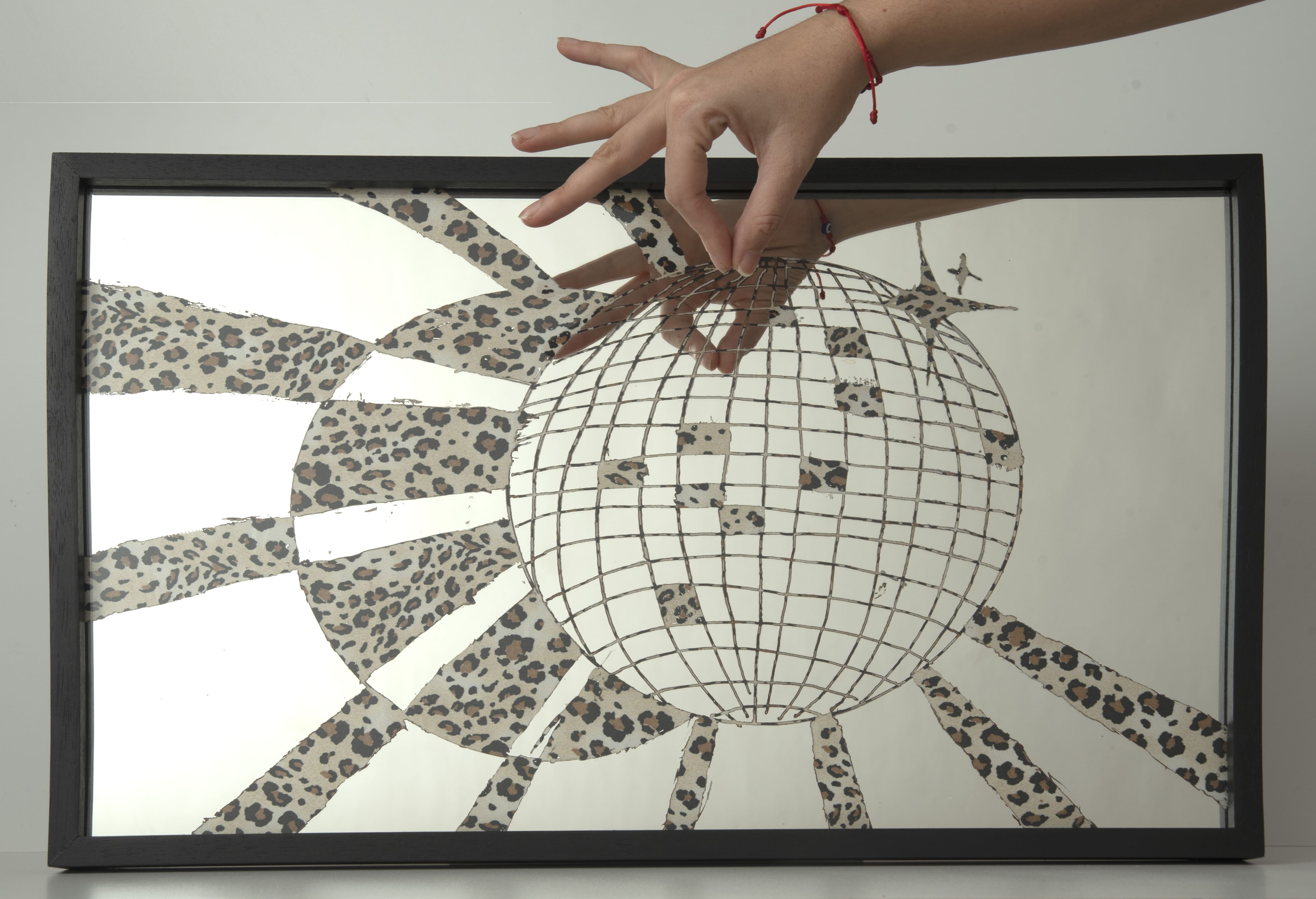 “ Un desafío de percepción para salir de la autopercepción. (Dibujos flotando en un espejo que obligan a desviar la mirada de unx mismx para poder verlos). El concepto de safe place remite a esos espacios seguros a los que volvemos cuando nos sentimos vulnerables. Pueden ser películas de la infancia que revisitamos, libros que releemos, pero también amistades o lugares físicos. En esta obra, la idea de "lugar seguro" no busca aludir a la seguridad en términos de resguardo o propiedad privada, sino a ese espacio —a veces mental— donde unx se siente a salvo, incluso de sí mismx y puede abrirse con sinceridad para elaborar y procesar. En una sociedad narcisista, encontrar confort en algún frame de recuerdo en dispositivo estático no tecnológico quizás sea una manera poética de escapar a la hyperdemanda de desarrollo personal de una marca propia o un perfil virtual. En particular, los dibujos que presento trazan una autobiografía invisible y también representan algunos de esos espacios comunes donde he encontrado, y aún encuentro, un descanso dentro de este mundo incierto. tecnica (espejos calados con telas estampadas por detrás)